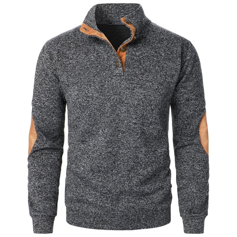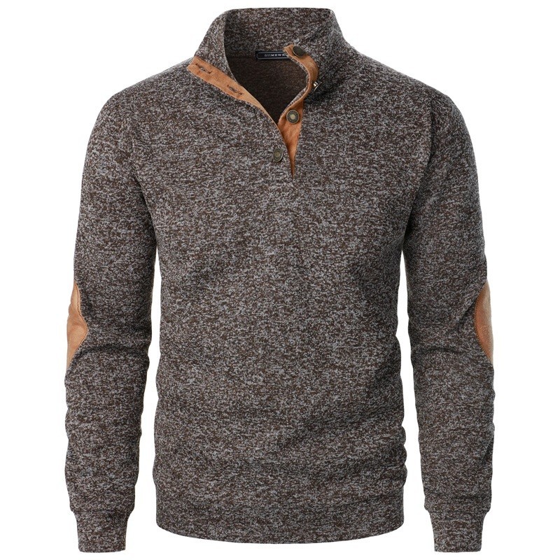 1× męski sweter z kołnierzykiem na guziki i łatami na łokciach (wybrany kolor i rozmiar)