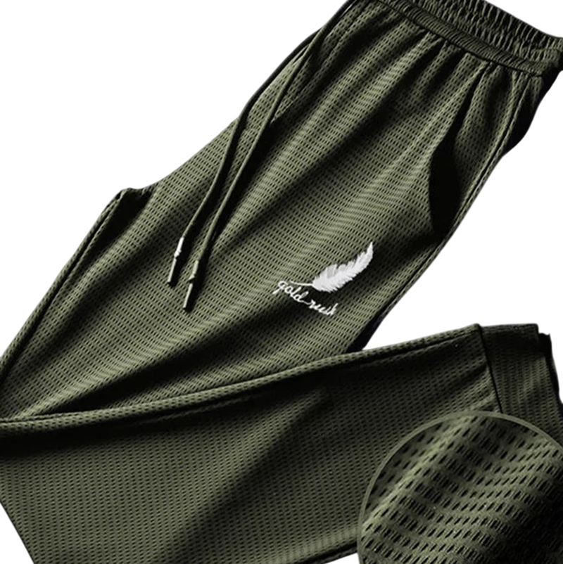 Męskie dresy z oryginalnym nadrukiem piórka na boku, jednokolorowe, z kieszeniami i ściągaczem na sznurek. Wykonane z poliestru dla wygody i elastyczności. Pełny opis