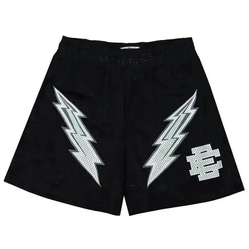Męskie siateczkowe spodenki sportowe do ćwiczeń, luźne letnie spodenki z elastycznym pasem, spodenki treningowe z nadrukiem Lightning