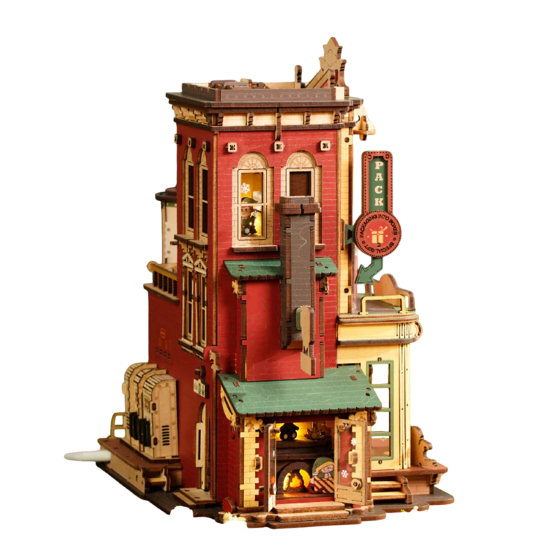 Taki Fantasy Workshop w mini wersji to fascynujące połączenie sztuki, techniki i fantazji. To idealny wybór dla każdego, kto kocha realistyczne modele z ruchem, światłem i dźwiękiem. Każdy krok montażu przynosi satysfakcję i poczucie, że ożywa prawdziwy mały świat pełen magii. Po zakończeniu fabryka staje się nie tylko urzekającą dekoracją wnętrza, ale także kolekcjonerskim elementem, który oczaruje każdego gościa. Umieść ją w widocznym miejscu i pozwól, aby światła i melodie przeniosły cię do magicznego świata produkcji zabawek.