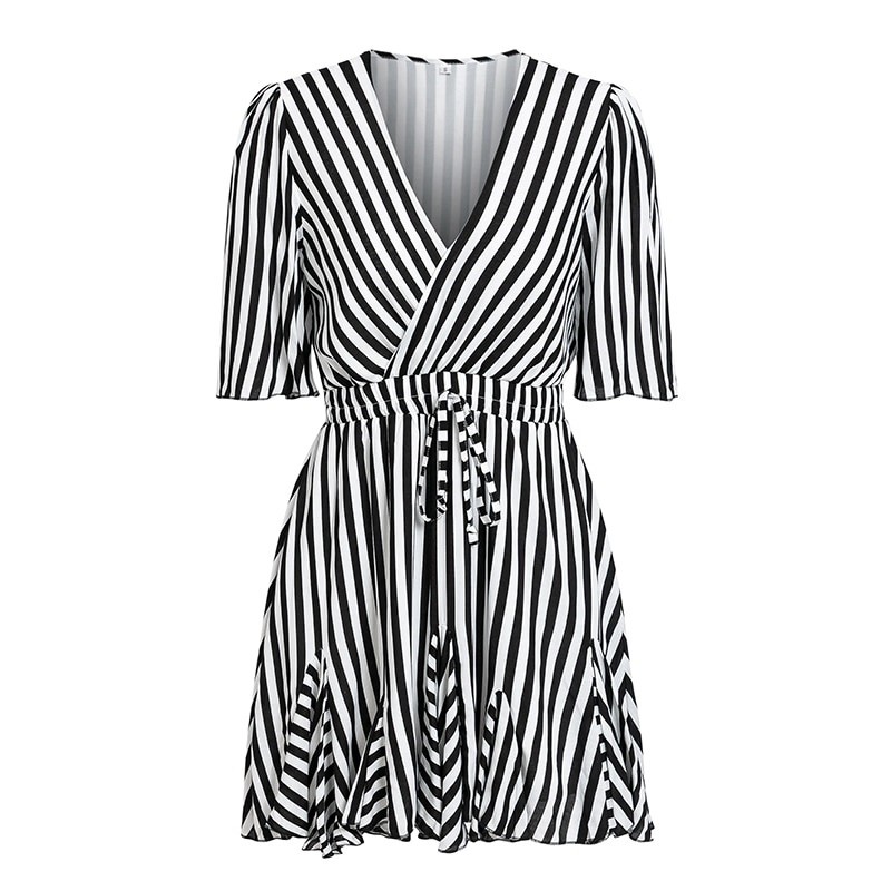 Krótka sukienka damska w paski.