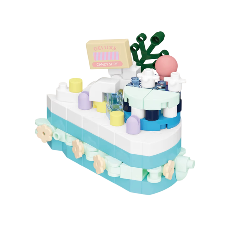 • Kreatywny zestaw konstrukcyjny niebieskiego tortu z kolorowym zdobieniem