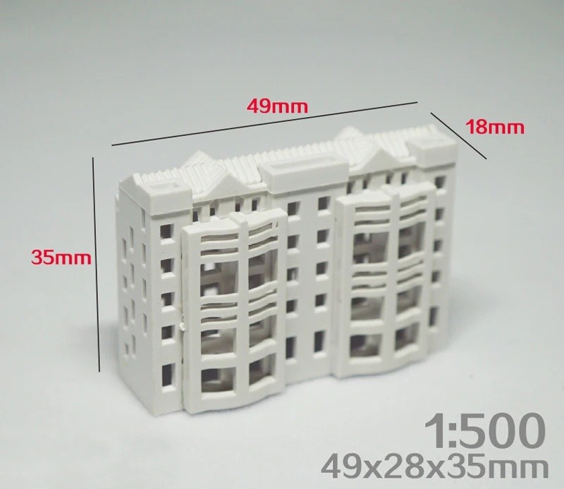 Miniaturowy budynek 1:500 49 x 18 x 35 mm zestaw modelowy domu do architektonicznych dioram i miejskiego krajobrazu