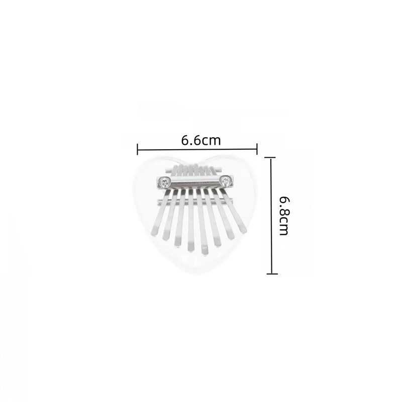 Mini kalimba Miwayer z 8 klawiszami to piękny i stylowy instrument muzyczny, który łączy tradycyjny dźwięk z nowoczesnym designem. Dzięki przezroczystemu akrylowemu korpusowi w kształcie serca wygląda jak elegancki kryształ i staje się nie tylko instrumentem muzycznym, ale również elementem dekoracyjnym. Wymiary 6,6 × 6,8 cm sprawiają, że jest to kompaktowy i lekki instrument, który możesz mieć zawsze przy sobie – w domu, w podróży lub w pracy.