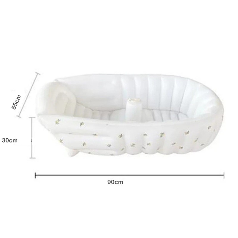 Nafukacyjna wanienka dla dzieci z motywem oliwek, 90 × 55 × 30 cm, materiał PVC, kolor biały, do kąpieli niemowląt i małych dzieci