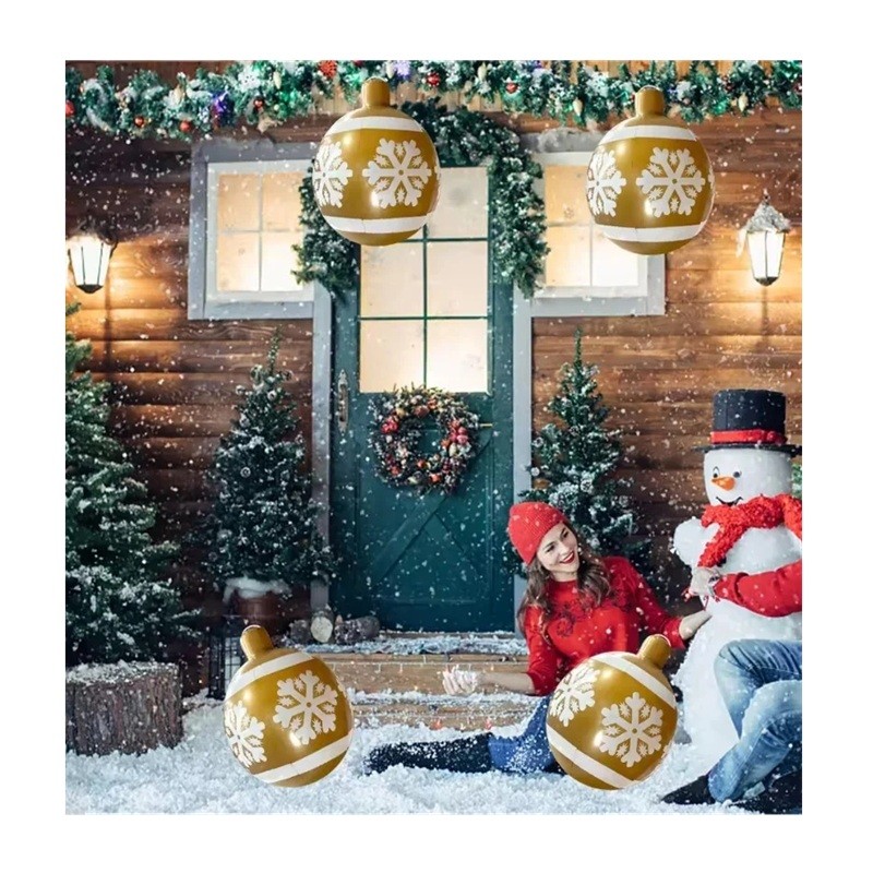 Nafukująca Choinkowa Kula 48 x 65 cm Ogromna Dekoracja Zewnętrzna z Motywem Płatków Śniegu Wisząca Ozdoba na Przyjęcie Świąteczne