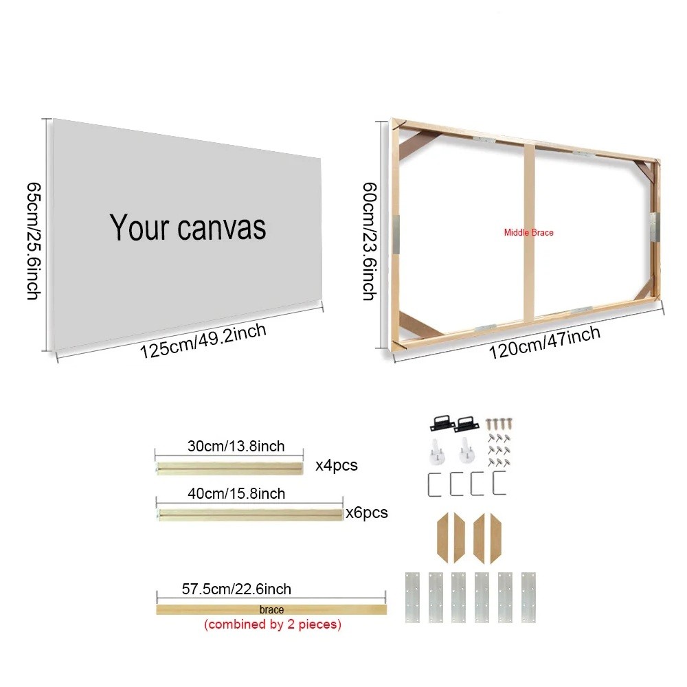 Naturalny drewniany ramka na zdjęcia 60 x 120 cm Ramka na płótno 65 x 125 cm Z średnim wzmocnieniem 57,5 cm wisząca ramka na zdjęcia obrazy DIY