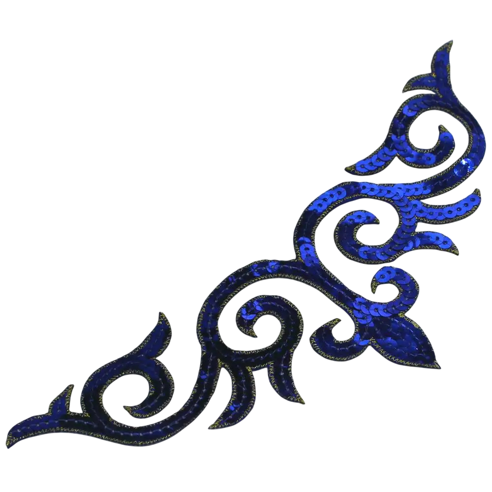 Materiał wykonany jest z poliestru, który jest odporny i dobrze trzyma kształt. Cekiny tworzą dekoracyjny błyszczący efekt, który może ożywić proste ubrania lub uzupełnić kreatywny projekt. Tylna strona aplikacji zawiera warstwę do nałożenia na gorąco, która umożliwia łatwą aplikację za pomocą żelazka.