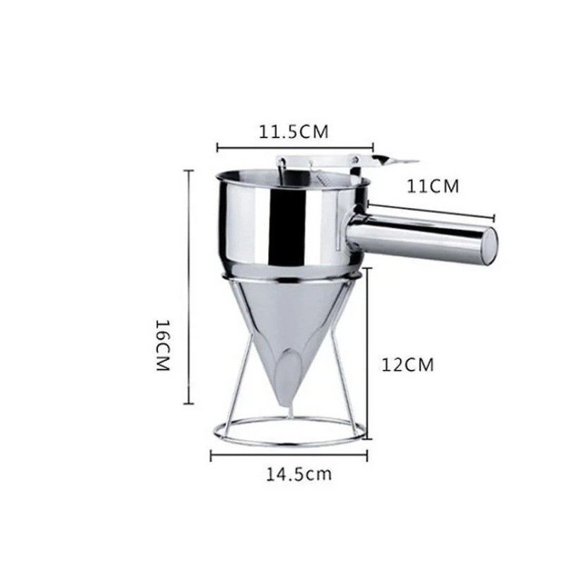 Nerezowy dozownik z lejkiem 600 ml ze stelażem Kompaktowy dozownik ciasta na naleśniki, muffiny, polewy, praktyczna pomoc kuchenną