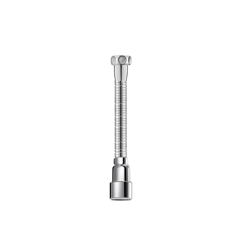 Przedłużający nasadek na baterię rozszerza możliwości zwykłego kranu podczas pracy w kuchni. Dzięki elastycznemu wężowi można doprowadzić wodę do różnych części zlewu i ułatwić spłukiwanie naczyń lub czyszczenie umywalki. Obrotowa dysza umożliwia łatwe kierowanie strumieniem wody według potrzeb. Perlator pomaga tworzyć stabilny strumień wody i ogranicza chlapnięcia. Konstrukcja ze stali nierdzewnej jest odpowiednia do codziennego użytkowania w kuchni.
