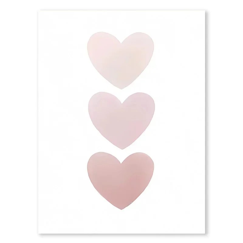 Stylowy dekoracyjny obraz z motywem trzech różowych serc ułożonych w pionowej linii stanowi delikatny i elegancki dodatek do pokoju dziecięcego. Minimalistyczne graficzne opracowanie łączy prosty design z romantycznym wyglądem, tworząc przyjemną atmosferę pełną harmonii i zabawy. Dzięki nowoczesnej technologii druku wyróżniają się intensywne kolory, delikatne przejścia kolorów oraz precyzyjne linie motywu. Średni rozmiar obrazu pozwala na wykorzystanie go zarówno samodzielnie, jak i w połączeniu z innymi elementami dekoracyjnymi. Ten plakat to idealny wybór do stworzenia przytulnego i stylowego wnętrza dziecięcego.