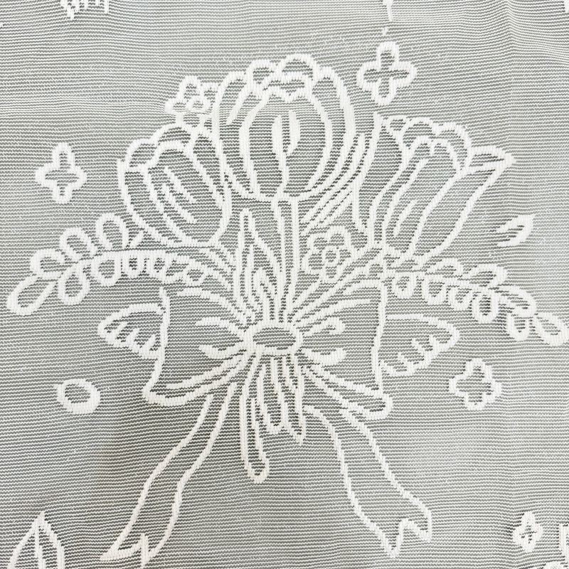 Design obrusu tworzy biały koronkowy wzór z kwiatowym motywem, który zawiera stylizowane kwiaty i delikatne elementy ornamentacyjne. Częścią dekoru są również motywy tulipanów, które nadają obrusowi naturalny wygląd i mogą uzupełniać różne style wnętrza.