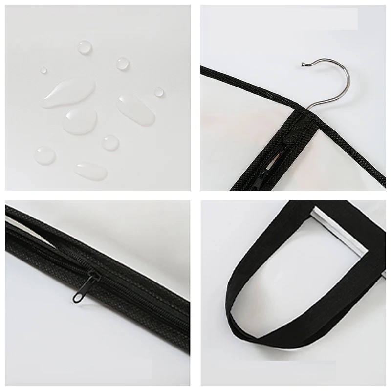 W skład obalu wchodzą również mocne uchwyty, które umożliwiają łatwe przenoszenie lub złożenie obalu w celu zaoszczędzenia miejsca. Obal można złożyć do kompaktowego kształtu za pomocą zintegrowanych pasków, jak pokazują dołączone zdjęcia. Konstrukcja została zaprojektowana tak, aby odzież pozostała chroniona, prosta i bez zagnieceń. Dzięki wodoodpornej powierzchni nadaje się do długoterminowego przechowywania odzieży w domu oraz w podróży.