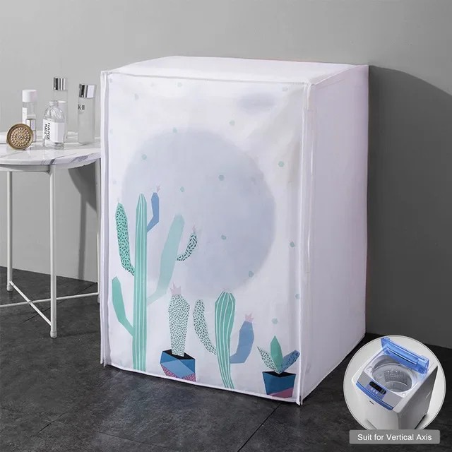 Ochrannym pokrowiec na pralkę ładowaną od góry 86 x 62 x 55 cm Motyw kaktusy Zamek z góry i z przodu PEVA ochrona przed kurzem i zanieczyszczeniami