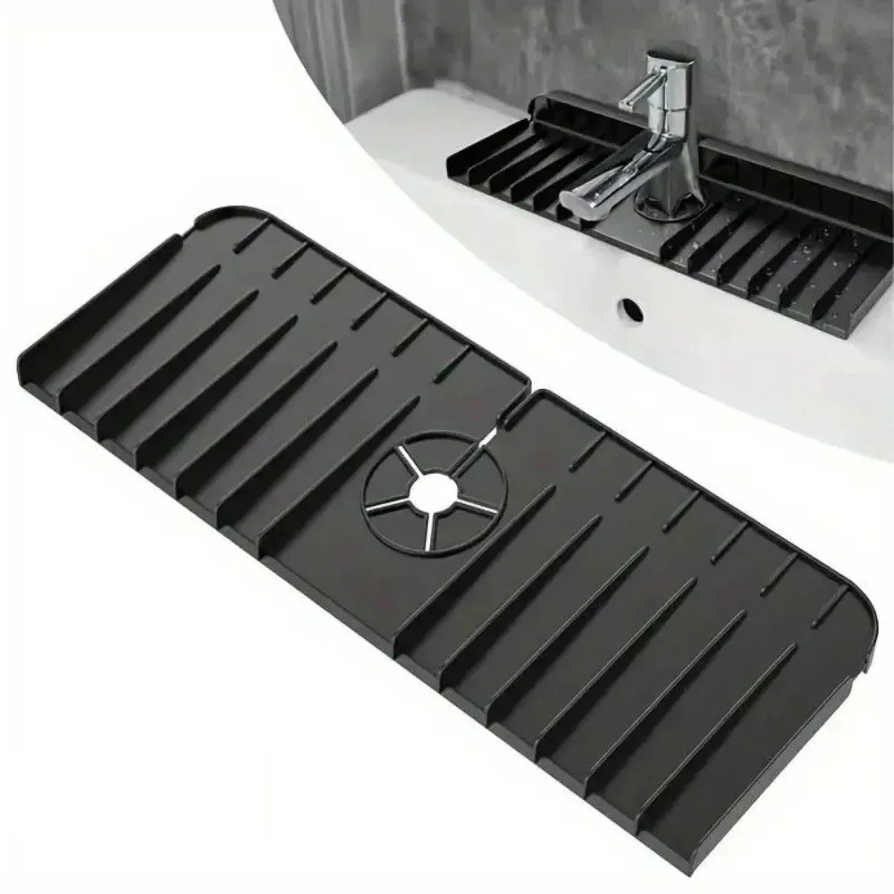 Odkapávająca podkładka pod zlew 37 x 14 x 1,5 cm Silikonowa pod baterię Jednowarstwowa Ochrona przed chlapaniem wody Uchwyt na gąbkę