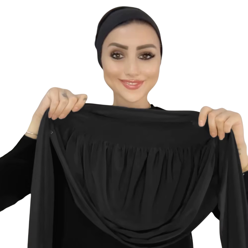 Ten okamżony hidżab dla muzułmańskich kobiet został zaprojektowany z myślą o wygodnym i szybkim codziennym noszeniu bez skomplikowanego wiązania. Dzięki praktycznemu krojowi zapewnia niezawodne i eleganckie rozwiązanie dla kobiet, które szukają prostoty i dyskretnego stylu. Model zapewnia pełne zakrycie głowy, spełniając wymagania dotyczące dyskretnego i komfortowego zakrycia. Jest odpowiedni do codziennego noszenia do pracy, szkoły oraz na okazje wieczorowy.