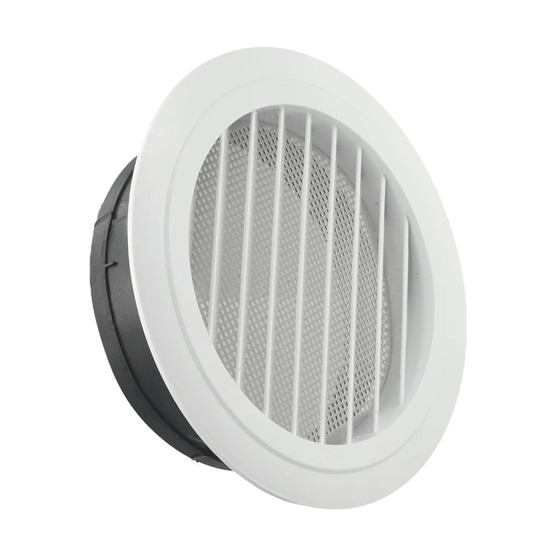 Regulowany otwór wentylacyjny 150 mm z plastiku ABS do instalacji na ścianie, skuteczna wentylacja i ochrona przed wilgocią, idealny do łazienek, biur i innych pomieszczeń. Pełny opis