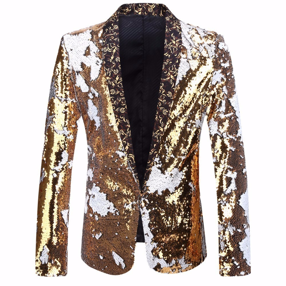 Jeśli chcesz zabłysnąć na jakiejkolwiek imprezie lub pożegnaniu, weź ten lśniący garnitur, który jest całkowicie pokryty kolorowymi cekinami.