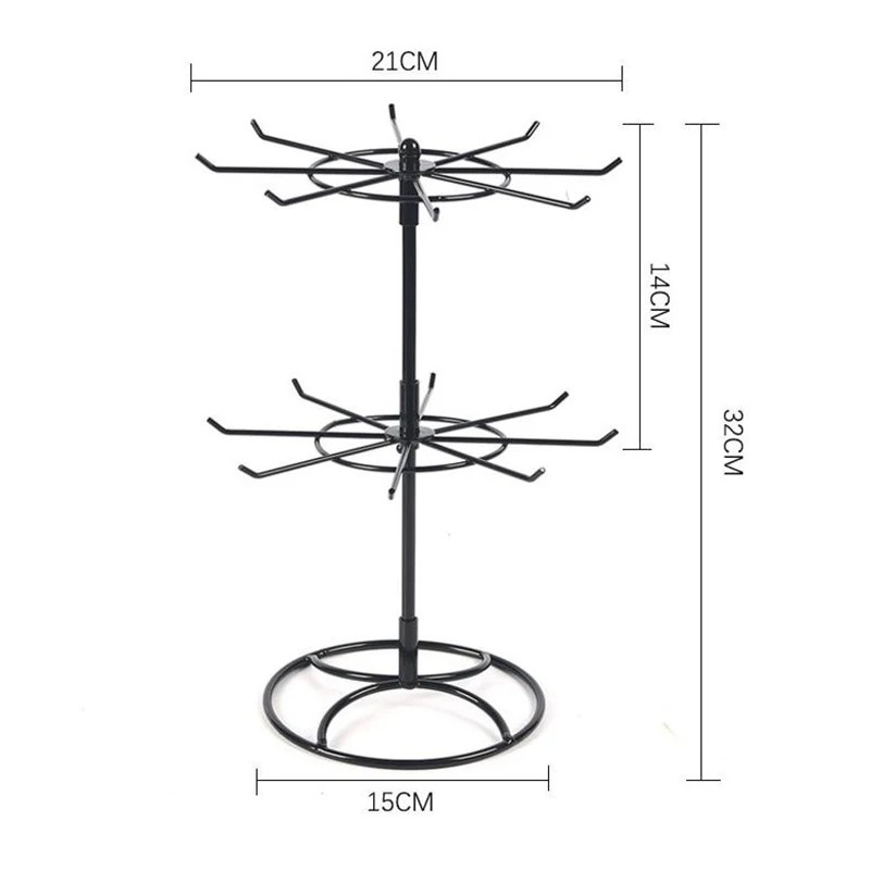 Otoczny stojak na biżuterię służy do przejrzystego przechowywania i eksponowania różnych rodzajów biżuterii. Konstrukcja z dwoma poziomami umożliwia zawieszenie naszyjników, bransoletek, zegarków lub innych dodatków.