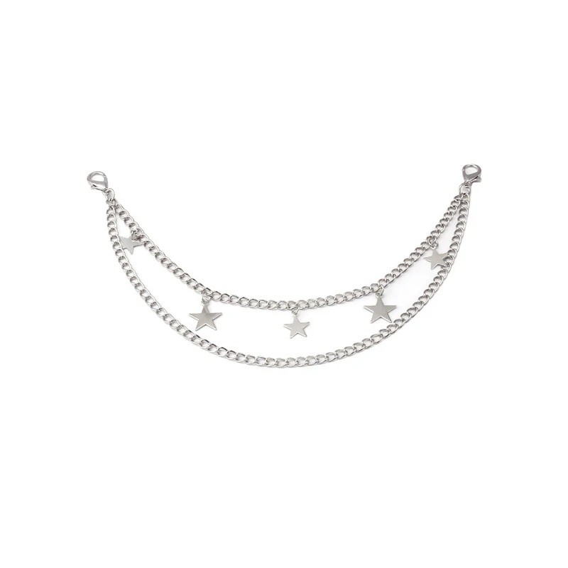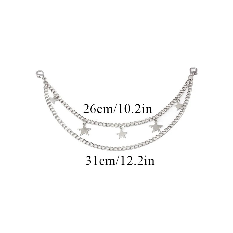 Ozdobny łańcuszek do torebki podwójny z gwiazdkami 26 x 31 cm Stal nierdzewna Srebrny dekoracyjny łańcuch do torebki zapasowy krótki uchwyt