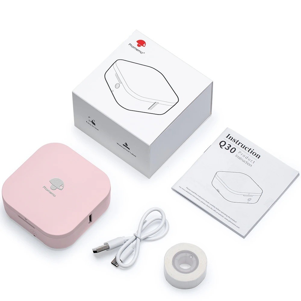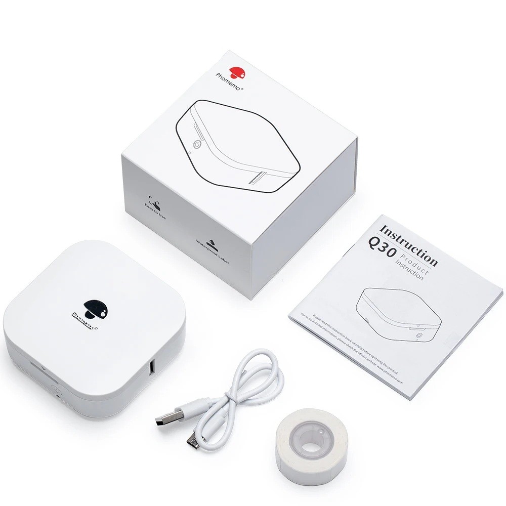 • Zawartość opakowania: 1× drukarka Phomemo Q30, 1× kabel Micro USB, instrukcja obsługi (baterie nie są dołączone).