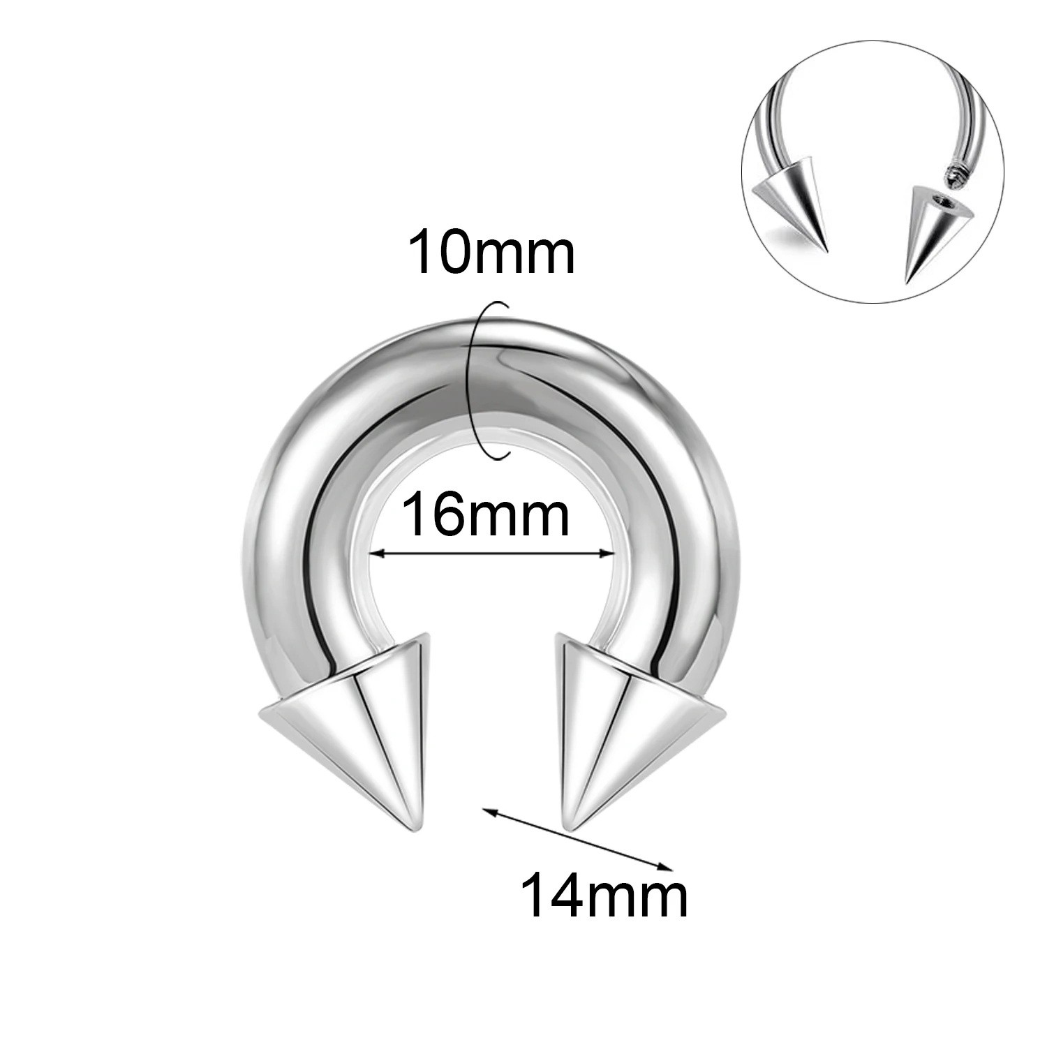 Piercing do nosa septum 10 x 16 x 14 mm Podkowowaty kształt z końcówkami ze stali nierdzewnej Masywny piercing do przegrody nosowej