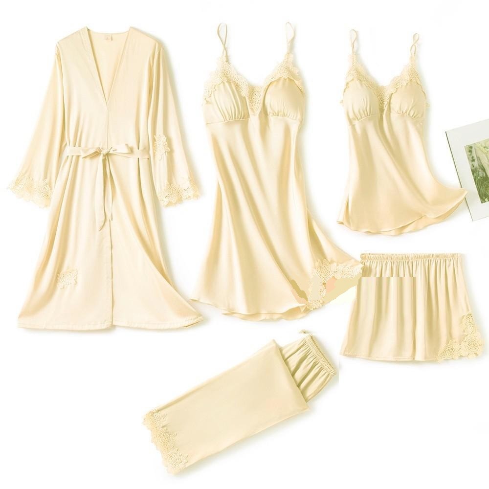 Zawartość opakowania: 1x koszula nocna, 1x top, 1x spodenki, 1x spodnie, 1x szlafrok