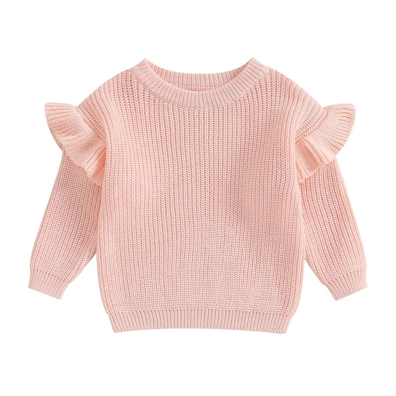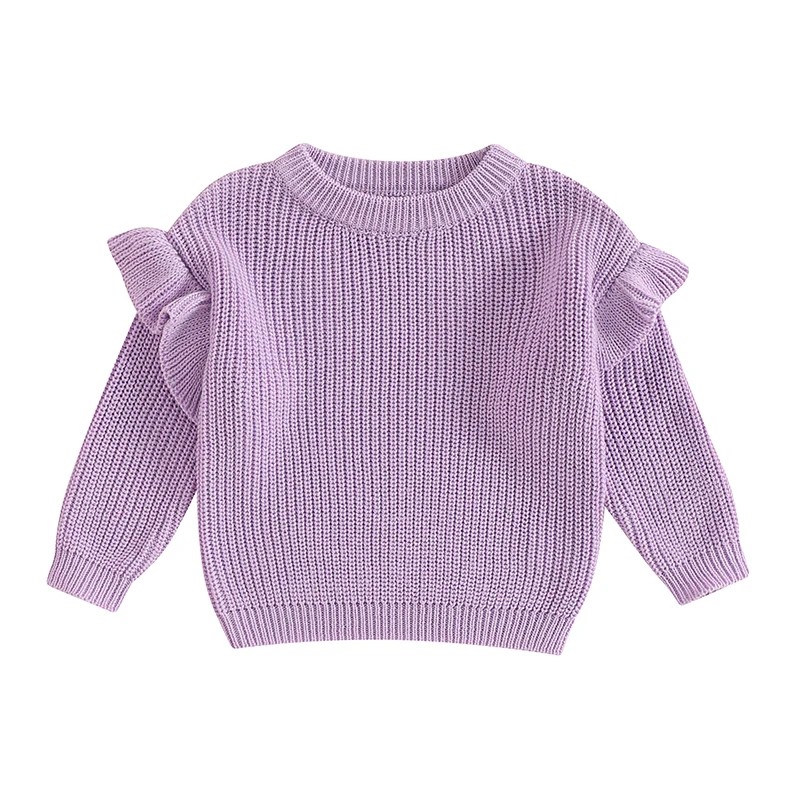Pleteny dziecięcy sweter z falbankami dla noworodków Bawełna i akryl Długi rękaw Jednokolorowy luźny top z okrągłym dekoltem O-neck dla dziewczynek i chłopców