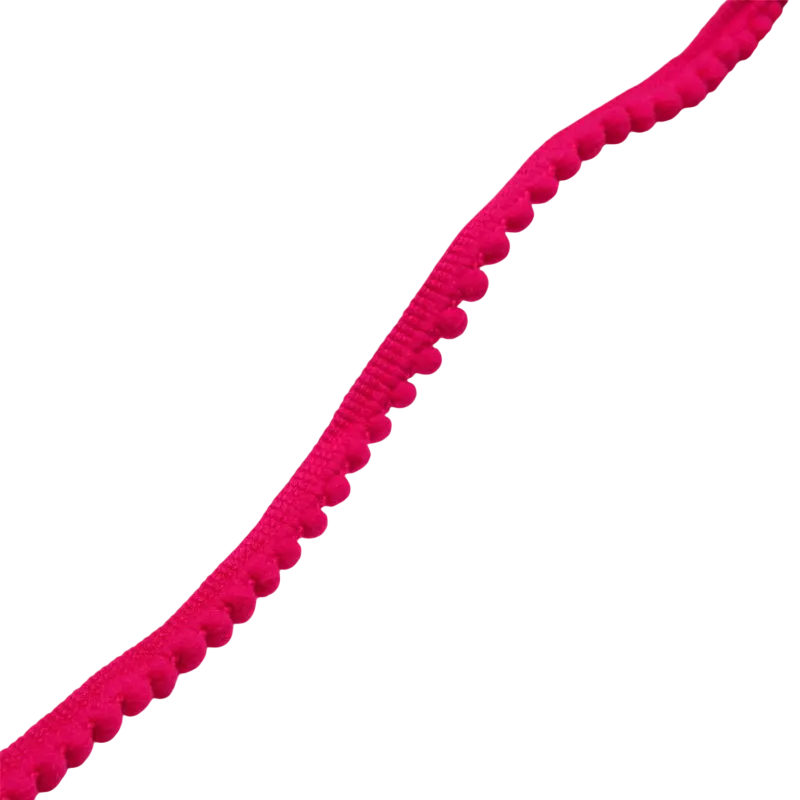 Wstążka jest wykonana z połączenia poliesteru i bawełny, co zapewnia dobrą odporność oraz przyjemną strukturę materiału. Dzięki temu dobrze się z nią pracuje podczas szycia, klejenia lub innego mocowania na różnych powierzchniach. Plyszowe pomponki tworzą dekoracyjny brzeg, który jest popularny na przykład przy zdobieniu poduszek, zasłon, odzieży dziecięcej lub różnych kreatywnych wyrobów.