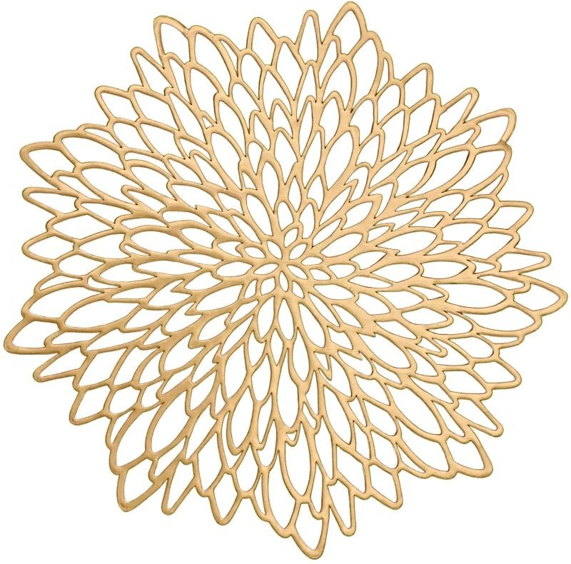 Podkładki mają wyraźny dekoracyjny wzór przypominający liście lub kwiatowy motyw. Liściasty dekoracyjny wzór tworzy interesujący element wizualny na stole i może uzupełnić nowoczesny styl wnętrza. Dzięki otwartej strukturze podkładki wyglądają lekko i dekoracyjnie.