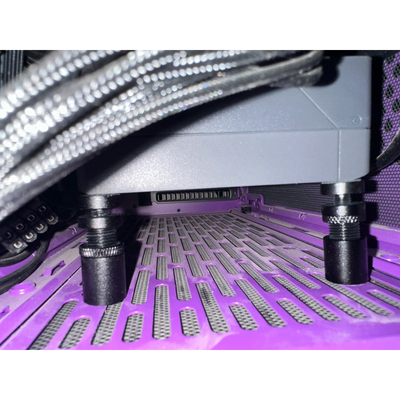 • Podpora zapobiega opadaniu kart graficznych i chłodnic CPU, co wydłuża ich żywotność