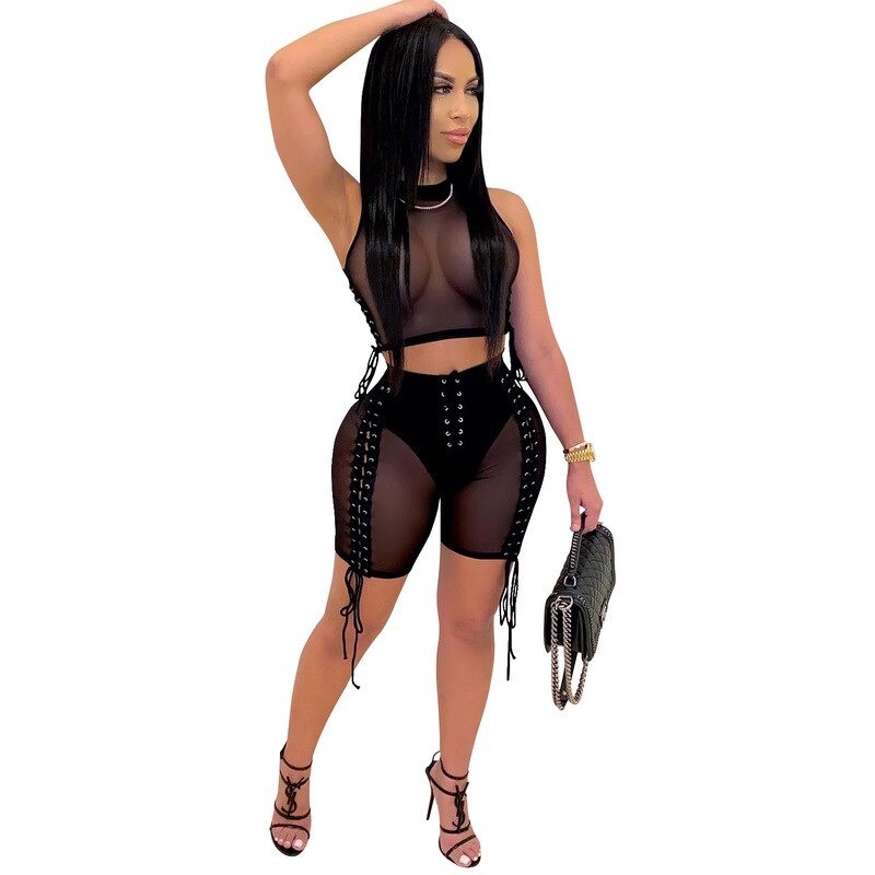 Półprzezroczysty krótki top i szorty damskie