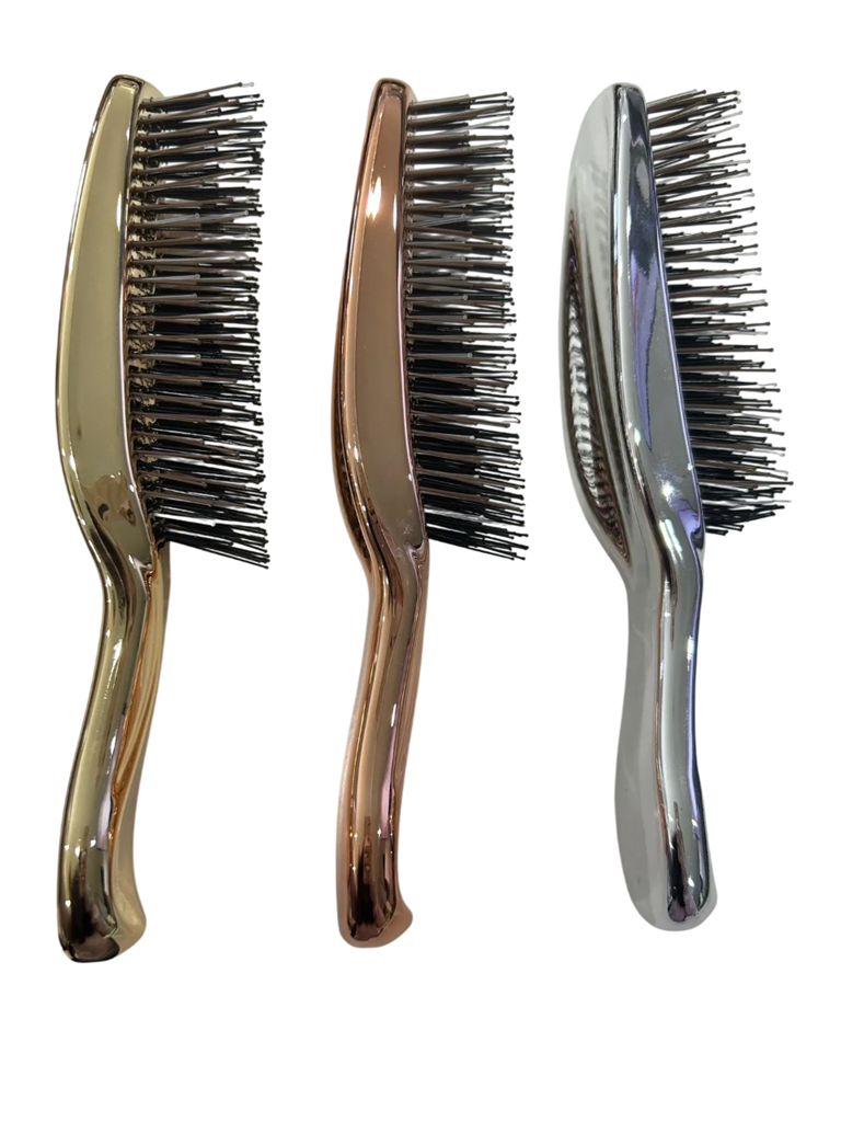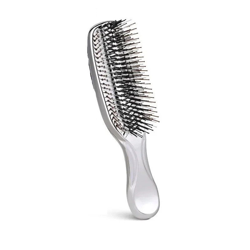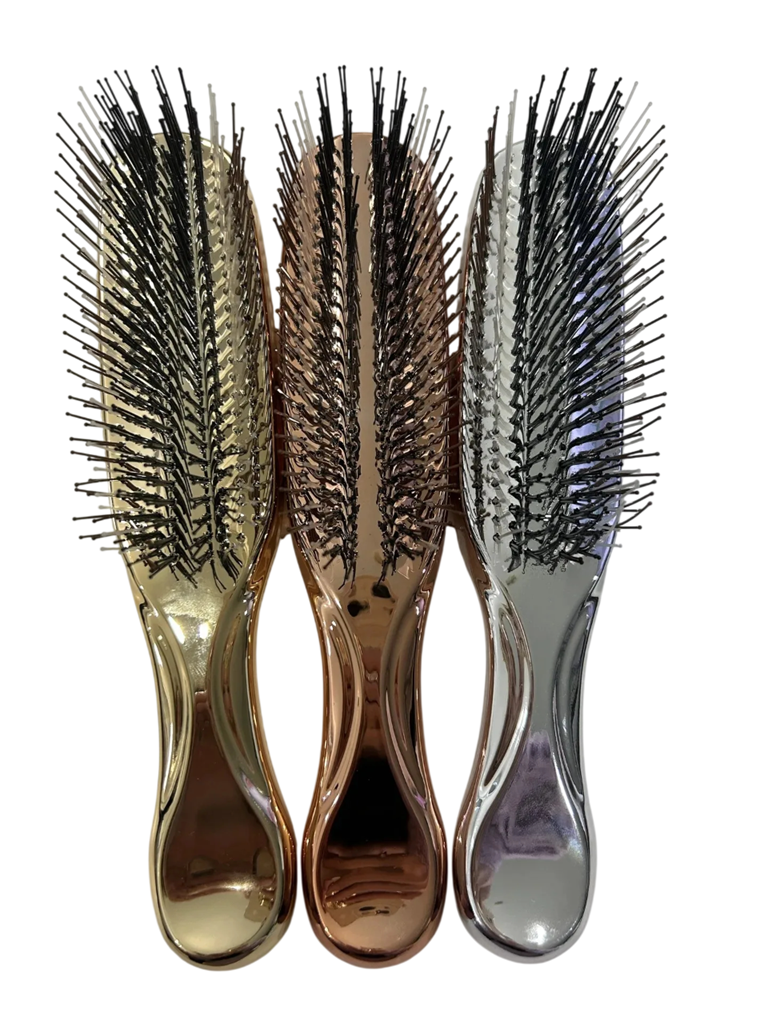 Premiumowa szczotka do włosów została zaprojektowana do codziennej pielęgnacji, łatwego rozczesywania oraz przyjemnego masażu skóry głowy. Dzięki ergonomicznemu kształtowi i wysokiej jakości plastikowemu wykonaniu, wygodnie leży w dłoni i umożliwia precyzyjne manewrowanie podczas stylizacji fryzury. Szczotka jest odpowiednia zarówno do suchych, jak i mokrych włosów, a także może być używana jako szczotka szamponowa podczas mycia włosów. Nowoczesne lustrzane kolory nadają elegancki wygląd i sprawiają, że jest stylowym dodatkiem do każdej łazienki. Regularne używanie pomaga poprawić komfort czesania i wspiera zdrowszy wygląd włosów.
