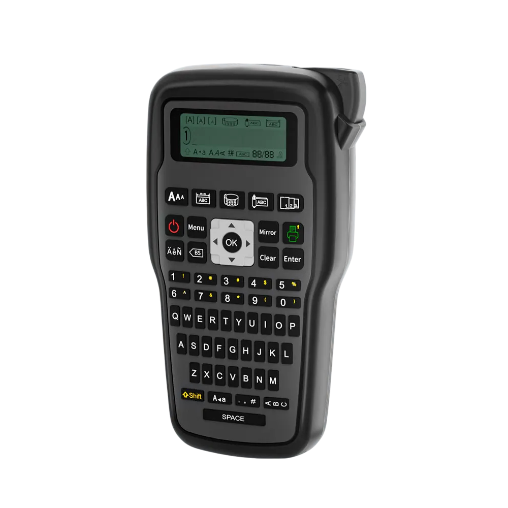 E1000PRO to nowoczesna i wytrzymała ręczna drukarka etykiet, zaprojektowana do szybkiego i efektywnego tworzenia profesjonalnych etykiet. Dzięki pełnowartościowej klawiaturze QWERTY i czytelnemu wyświetlaczowi LCD można wydrukować etykiety w ciągu kilku sekund. Obsługuje taśmy o szerokości 12 mm i jest idealna do użytku w biurze, w domu oraz w środowiskach przemysłowych. Drukarka oferuje możliwość zasilania przez nowoczesny złącze Type-C, co zapewnia szybkie ładowanie i niezawodną pracę.