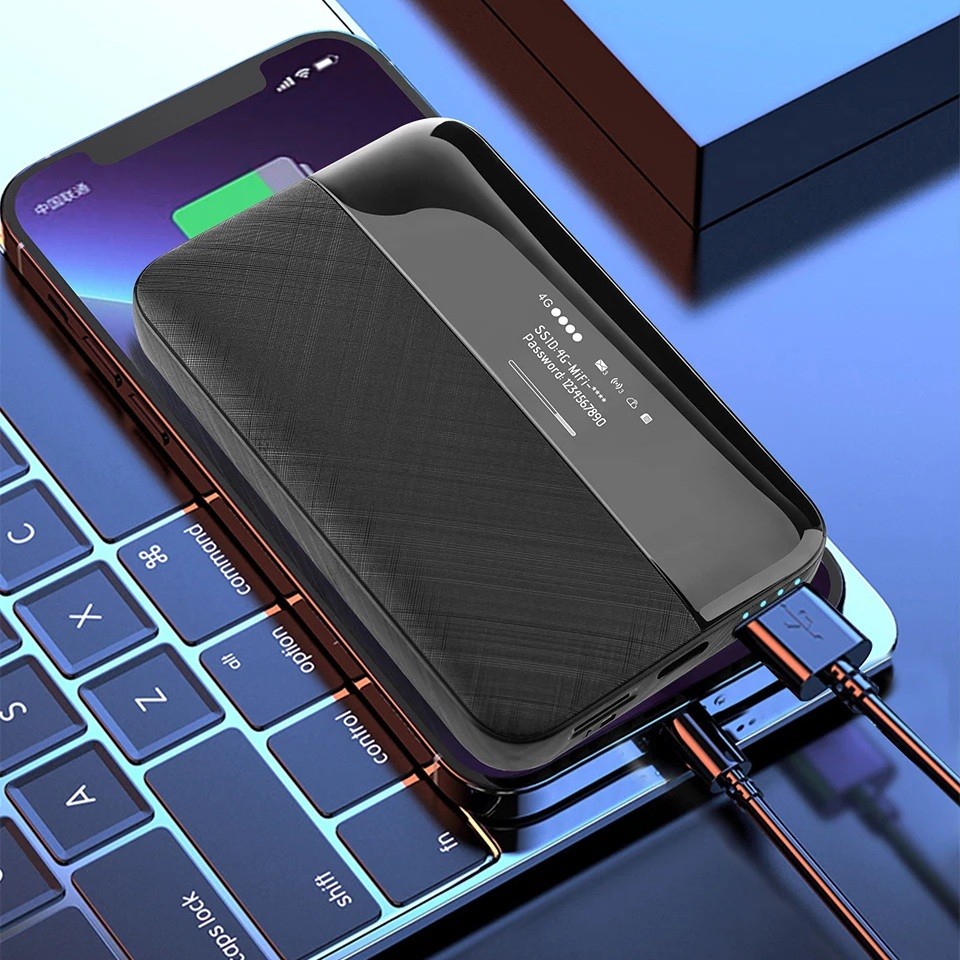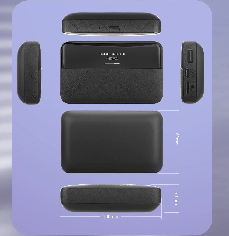 Przenośny kieszonkowy router WiFi 4G LTE 10 x 6,2 x 2,4 cm Mobilny hotspot z baterią 6000 mAh Czarny