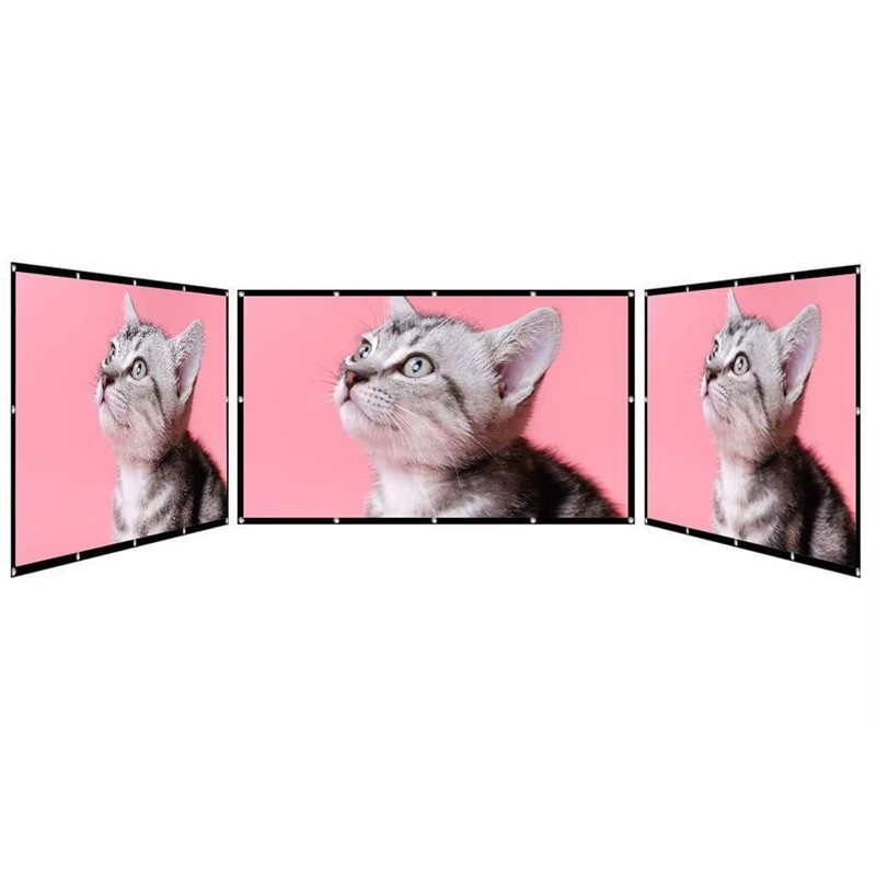 Wysokiej jakości składany ekran projekcyjny z gęstą białą powierzchnią dla wyraźnego obrazu, idealny do filmów, gier, prezentacji oraz projekcji na zewnątrz. Pełny opis