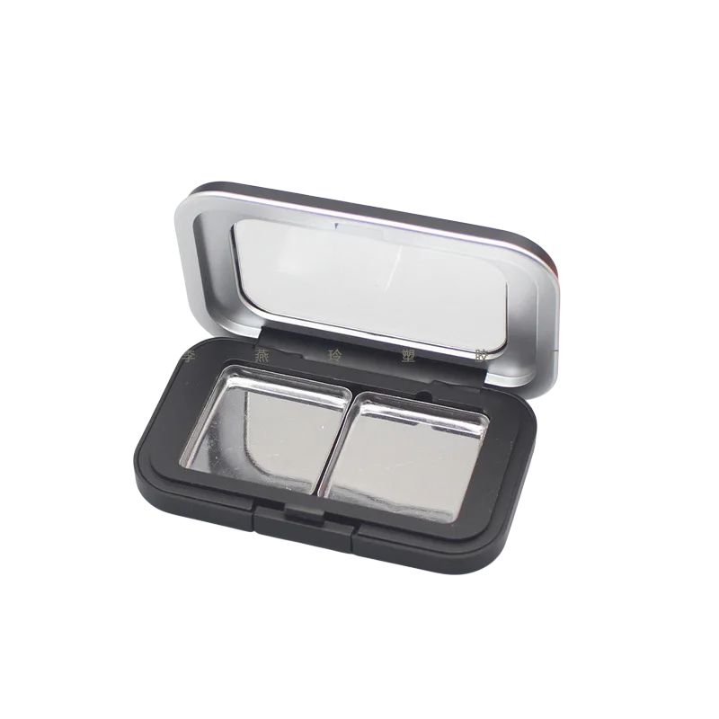 Pusty plastikowy pojemnik na kosmetyki z 2 okienkami 80,2 × 50 mm kompaktowa plastikowa pudełko czarne z przezroczystą pokrywką na makijaż