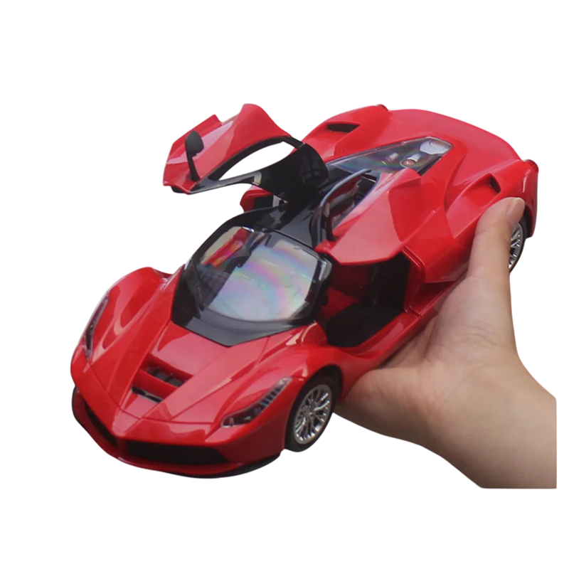 Auto zachwyca również dopracowanymi detalami – otwierane drzwi można obsługiwać za pomocą zdalnego pilota, co dzieciom zapewnia realistyczne wrażenia z jazdy. Migające przednie i tylne światła automatycznie aktywują się podczas jazdy, podkreślając autentyczny wygląd modelu. Z długością 30 cm, szerokością 11,8 cm i wysokością 8,5 cm auto wygląda solidnie i dobrze leży w mniejszych dłoniach.