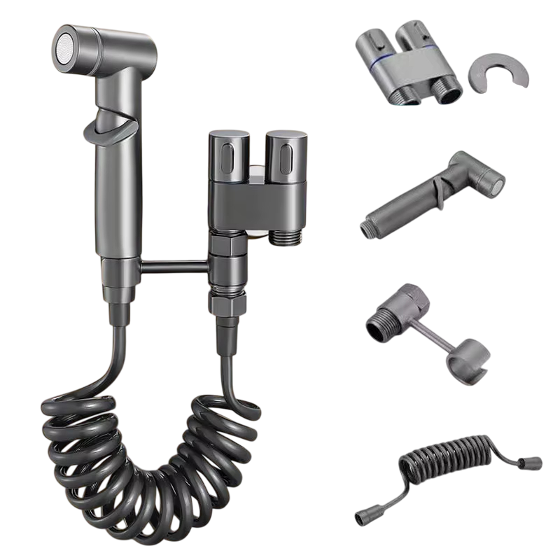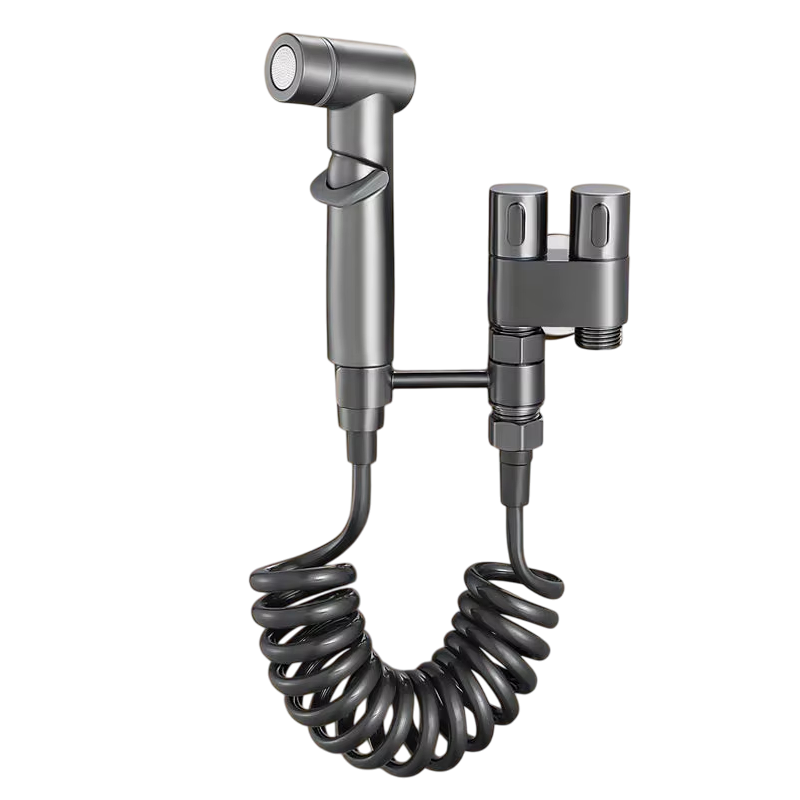Ten ręczny bidetowy rozpylacz z wężem jest doskonałym rozwiązaniem dla codziennej higieny, komfortu i czystości. Dzięki podwójnemu wypływowi i dźwigni ciśnieniowej G1/2 umożliwia precyzyjne kontrolowanie intensywności strumienia wody – od delikatnego rozpylacza po mocniejszy tryb prysznica. Jest idealny do higieny osobistej, spłukiwania muszli toaletowej, czyszczenia podłóg, pielęgnacji zwierząt domowych lub pomocy w opiece nad osobami starszymi. Ten praktyczny i elegancki system bidetowy łączy funkcjonalność z nowoczesnym designem i jest odpowiedni do każdej łazienki.