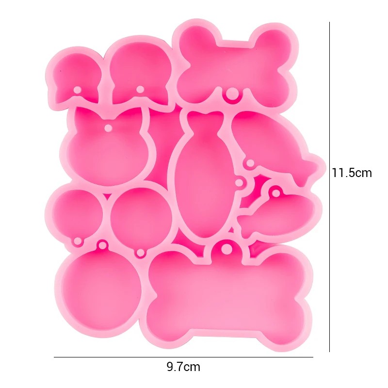 Różowa silikonowa forma mix kształtów 11,5 x 9,7 cm ryba kość kot owal kółka do odlewania żywicy produkcja zawieszek breloczków i ozdób