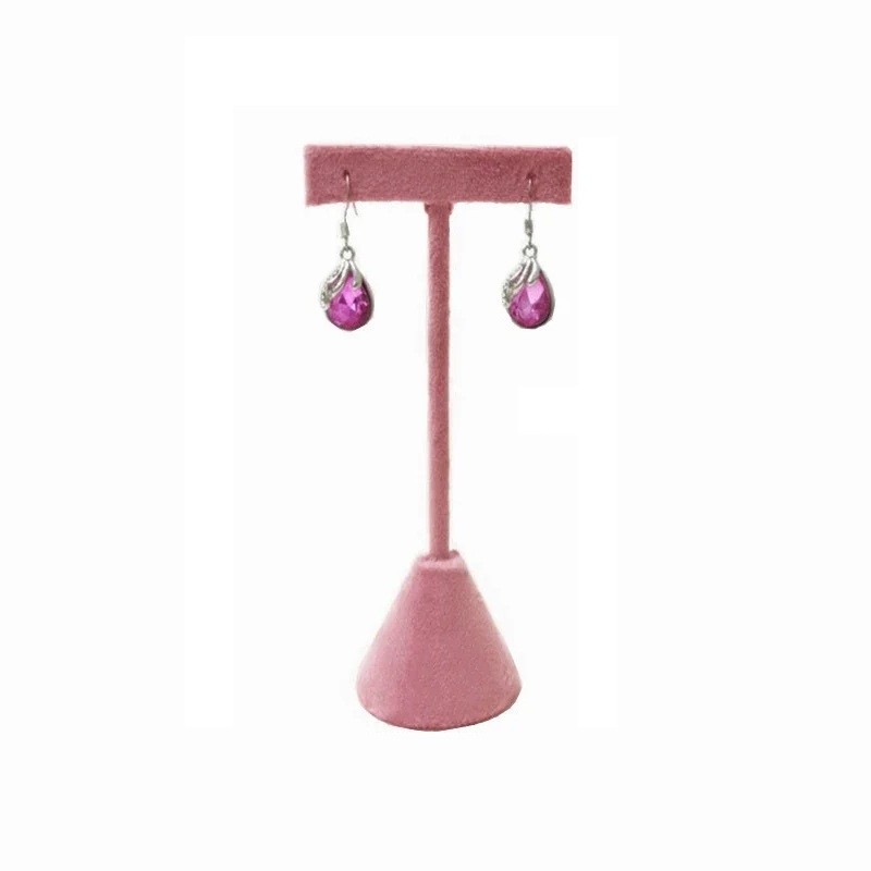 Sametowy stojak na kolczyki T-kształt 13 × 4 cm różowy aksamit stojak na biżuterię stół uchwyt do wyeksponowania kolczyków