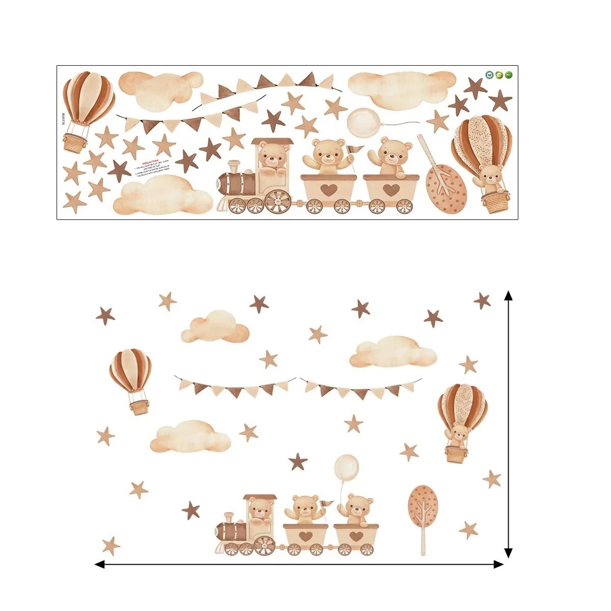 Samolepka na ścianę z motywem misiów w pociągu to delikatny i radosny sposób na dodanie ciepła, radości i zabawy do pokoju dziecięcego. Dzięki wysokiej jakości przezroczystemu matowemu winylowi doskonale stapia się ze ścianą i sprawia wrażenie części malowidła. Motyw został zaprojektowany tak, aby przyciągał dzieci i jednocześnie pasował do większości wnętrz. Instalacja jest bardzo prosta, co umożliwia szybką zmianę przestrzeni bez konieczności jakichkolwiek przeróbek. Ten element dekoracyjny jest odpowiedni do długotrwałego użytku i zachowuje swoją jakość nawet przy codziennym czyszczeniu.