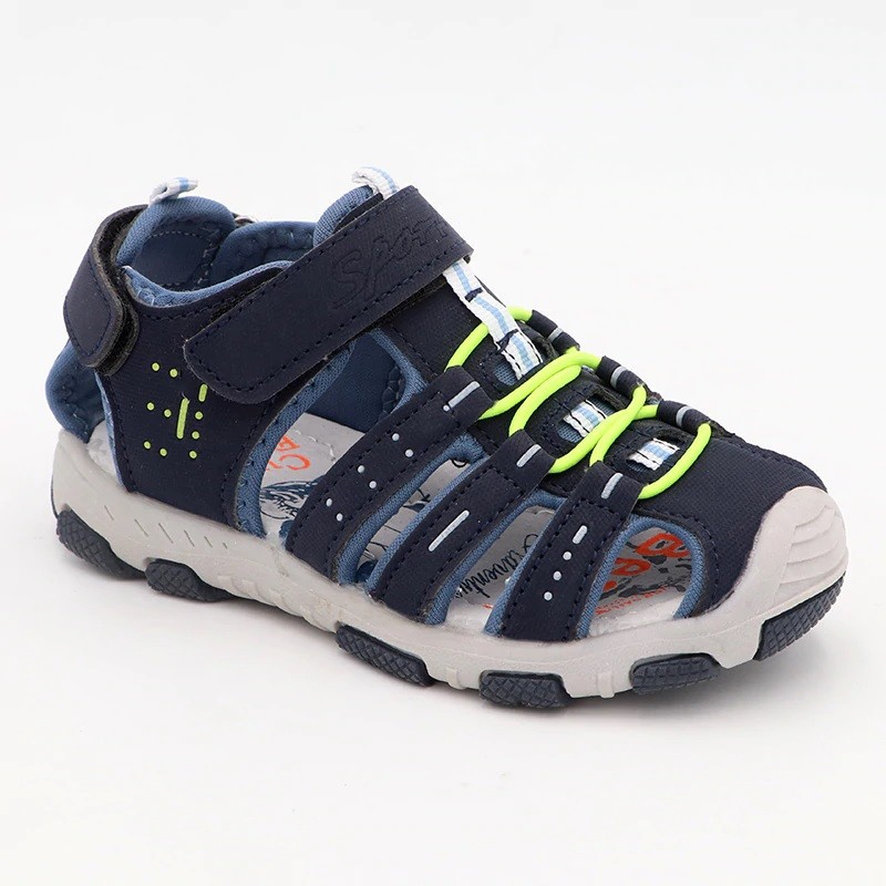 Sandały mają zakryty palec, który chroni palce przed kopaniem.