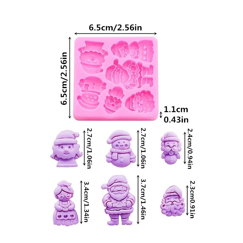 Taka silikonowa forma ze świątecznymi motywami umożliwia łatwe tworzenie szczegółowych mini postaci, które doskonale nadają się jako świąteczna dekoracja, świeczki lub ozdobne mydło. Zawiera kilka różnych kształtów – Świętego Mikołaja, bałwana, pani Claus, świątecznego dziadka i inne motywy.
