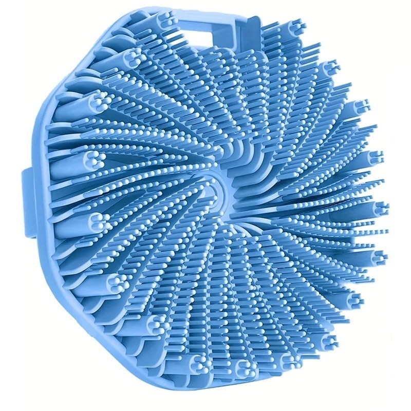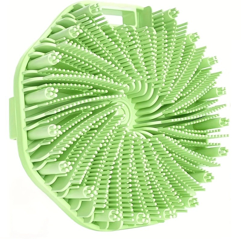 Silikonowa myjąca gąbka do ciała jest przeznaczona do codziennej higieny i dokładnego czyszczenia skóry. Dzięki delikatnym wypustkom na powierzchni pomaga w myciu usunąć zanieczyszczenia i martwe komórki naskórka, co przyczynia się do gładszej powierzchni skóry. Ten sposób mechanicznego czyszczenia jest odpowiedni do codziennej pielęgnacji bez użycia środków abrazyjnych.