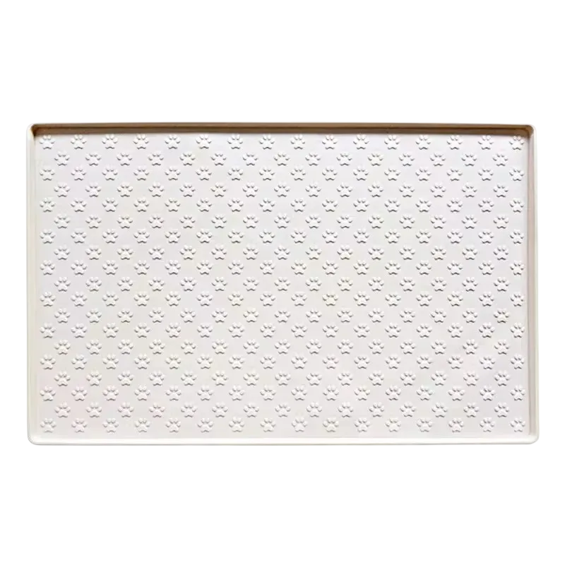Utrzymuj swój dom w czystości i porządku dzięki praktycznej silikonowej podkładce pod miski dla psów i kotów o wymiarach 60 x 40 cm. Ta podkładka została zaprojektowana z myślą o komforcie Twoich pupili oraz łatwej konserwacji domu. Dzięki podwyższonemu brzegowi skutecznie zapobiega rozlaniu wody lub rozsypaniu granulatu poza miski, chroniąc podłogę przed zanieczyszczeniem. Jest wykonana z wysokiej jakości silikonu spożywczego, który jest wodoodporny, antypoślizgowy i łatwy do czyszczenia, dzięki czemu stanie się praktycznym dodatkiem dla każdego właściciela psa lub kota.