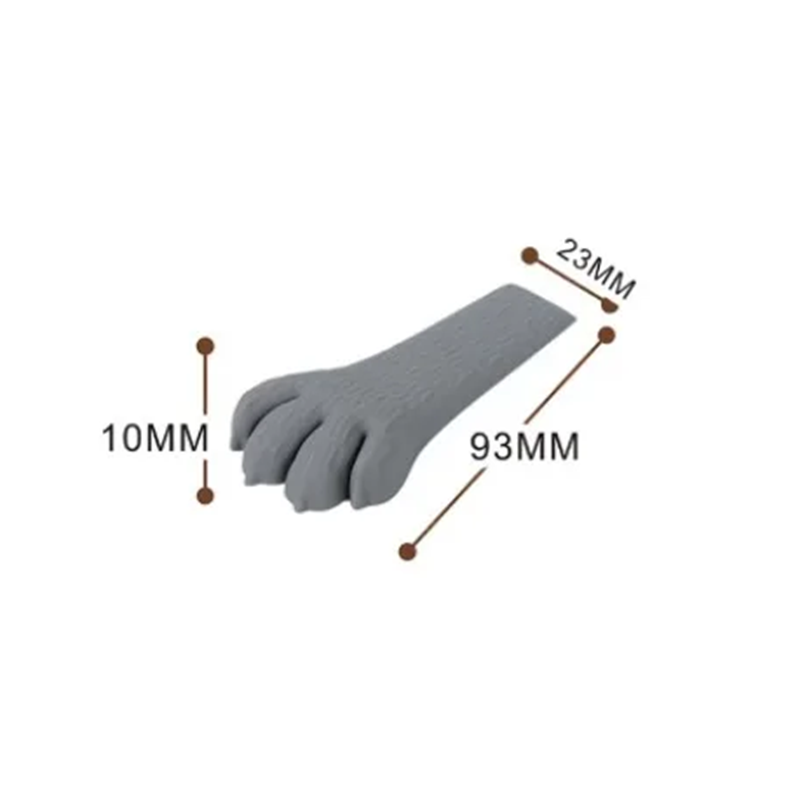Praktyczna silikonowa zatyczka w kształcie szarej łapki jest idealnym pomocnikiem dla każdego gospodarstwa domowego, biura lub pokoju dziecięcego. Została zaprojektowana tak, aby skutecznie zapobiegać samoczynnemu zamykaniu drzwi, a jednocześnie chronić palce – szczególnie dziecięce – przed przytrzaśnięciem. Dzięki swoim kompaktowym wymiarom 9,3 x 2,3 x 1 cm łatwo się ją stosuje i mieści się pod większością standardowych drzwi. Miękki silikonowy materiał zapewnia bezpieczne i stabilne mocowanie na różnych rodzajach podłóg. Stylowy motyw łapki dodatkowo nadaje wnętrzu przyjemny, zabawny element.