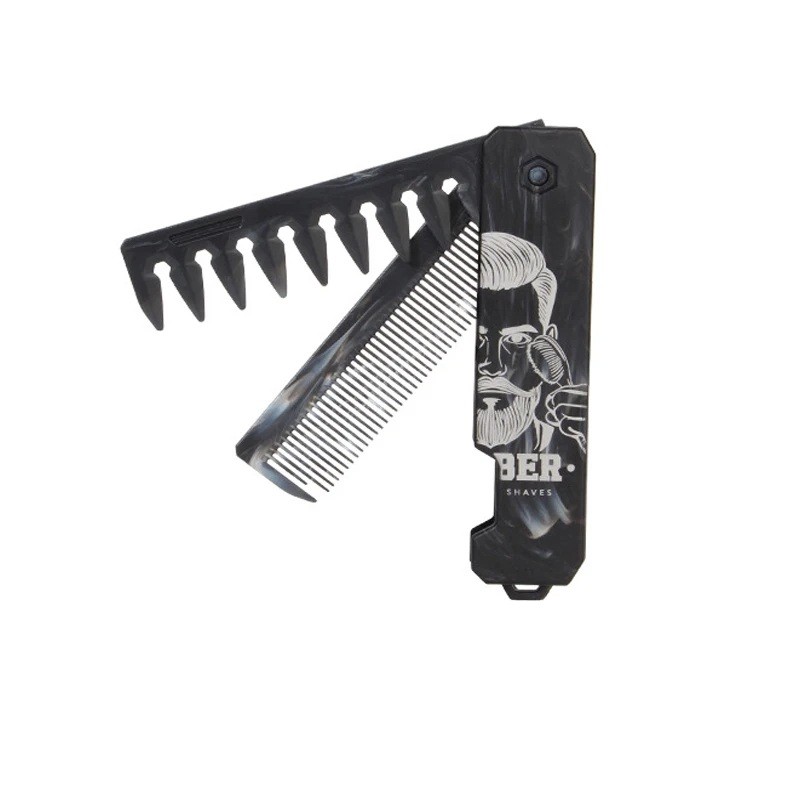 Składany grzebień kieszonkowy 22,2 x 2,8 x 2,8 cm 3w1 szerokie i drobne zęby do stylizacji włosów i zarostu praktyczny grzebień
