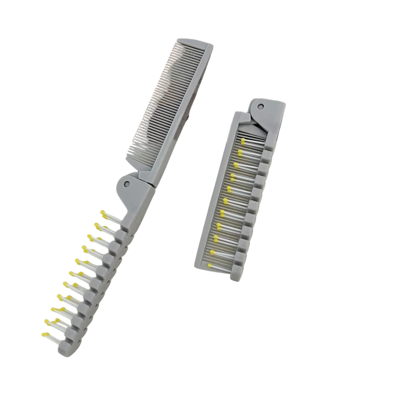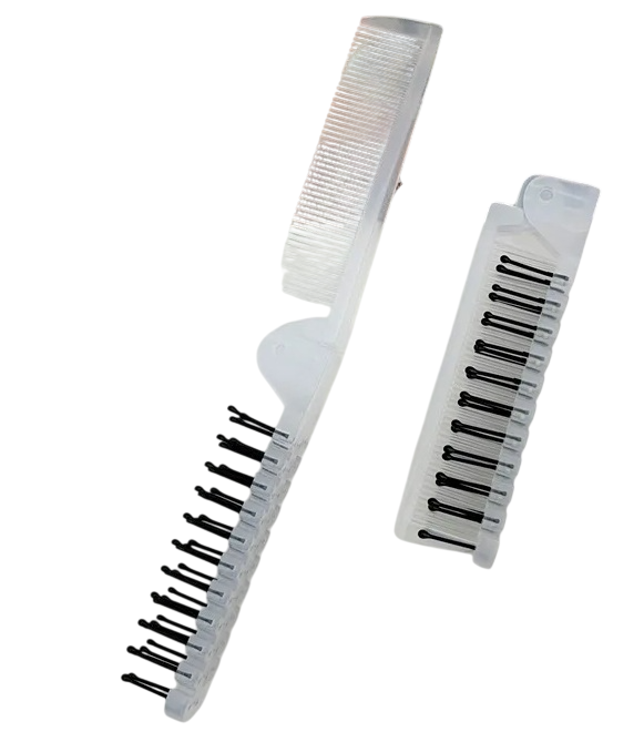 Praktyczny składany grzebień 2w1 to idealny pomocnik w codziennej pielęgnacji włosów w domu i w podróży. Dzięki kompaktowym wymiarom łatwo zmieści się w torebce, plecaku lub kieszeni, więc możesz go mieć zawsze pod ręką. Po rozłożeniu oferuje pełnowymiarową długość do wygodnego czesania i stylizacji fryzury. Specjalna konstrukcja została zaprojektowana tak, aby była lekka, trwała i odpowiednia do regularnego użytkowania.