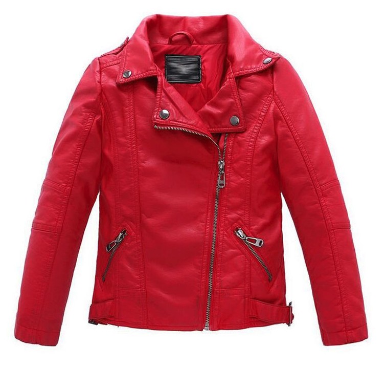 Skórzana kurtka dziewczyny - Czerwona